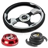 | ✚✚✚ NRG-SRK-140H-RD+001SL+650GM, NRG Innovations 12.5" 320mm Black Leather Silver Trim Racing Steering Wheel Combo with 6 Hole Short Hub Adapter with Gen 3.0 with Handle Gun Metal Quick Release Kit SRK-140H NRG Quick Release features many options that conventional ball-locking quick release system do not. It is specially engineered with raised sections to prevent the scratching and stretching of the hub while a self locking feature adds increased safety and functionality. Features racing styled for added style and look. Each unit is made from the highest quality aircraft grade aluminum and is anodized for maximum durability and finish.